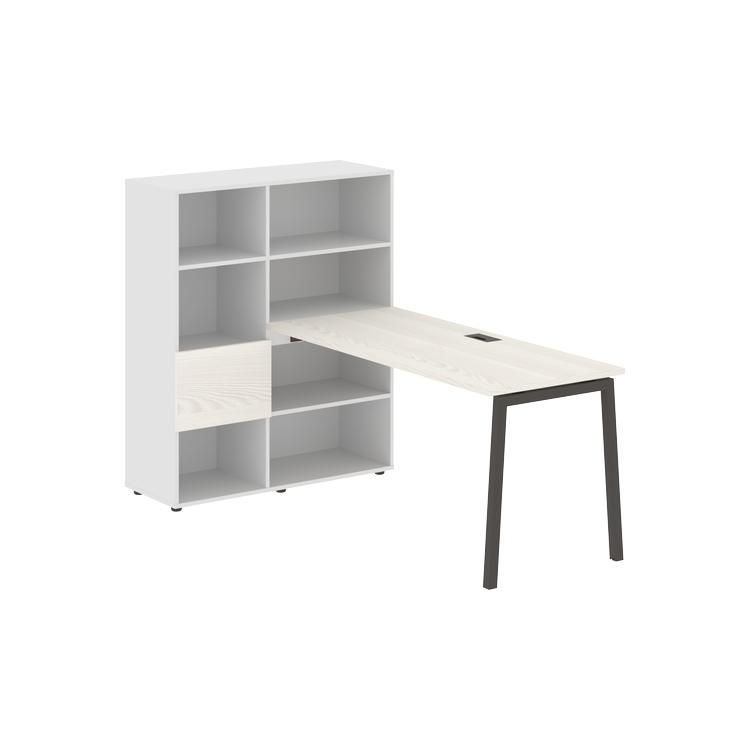 Каркасы стеллажей полностью из ЛДСП т.18 мм с кромками ПВХ т.2 и 0,45 мм, задняя стенка из ЛДСП. Комплектуется малой дверью в цвет столешницы и регулируемыми опорами h= 27 мм.