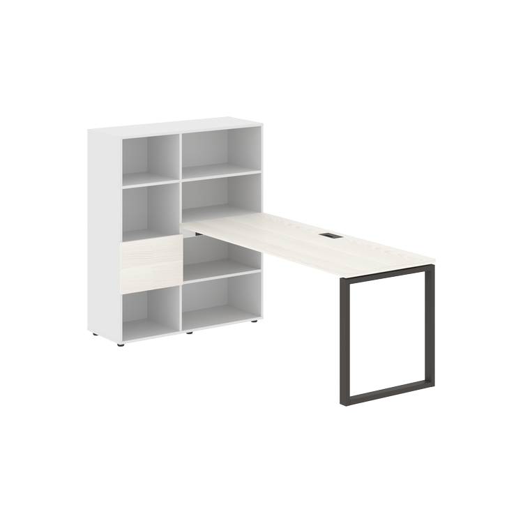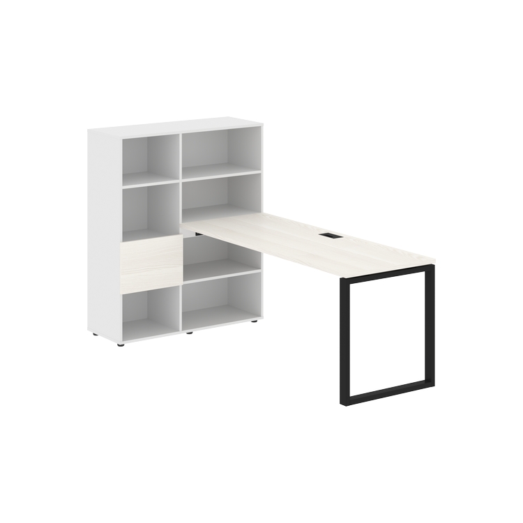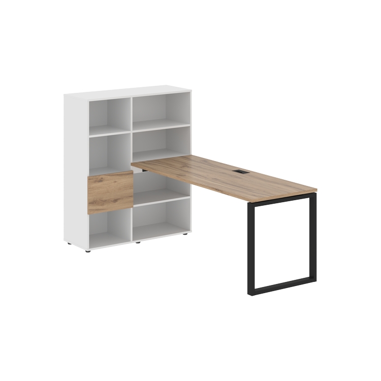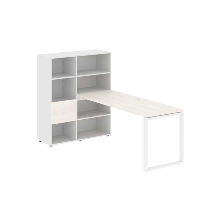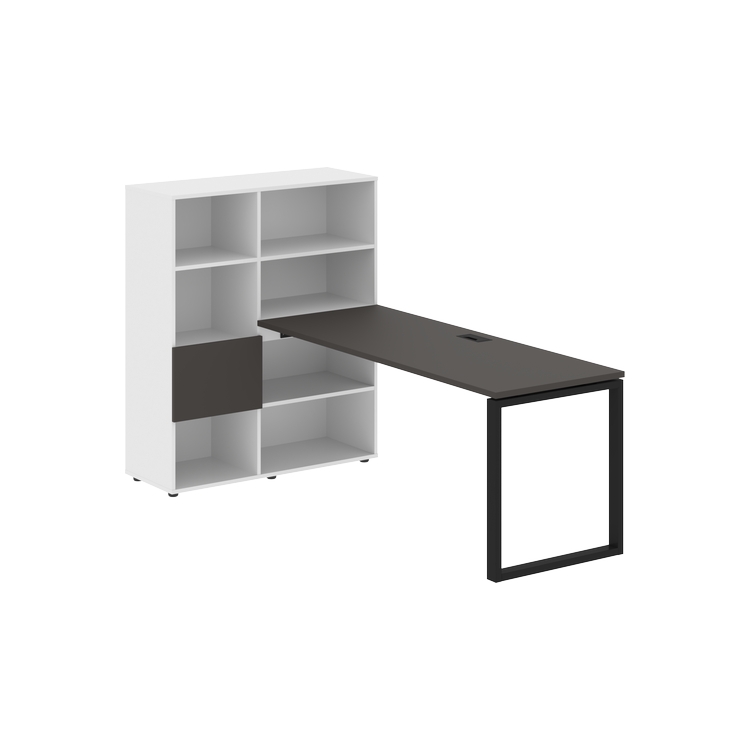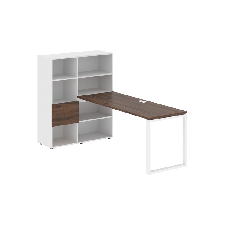 Каркасы стеллажей полностью из ЛДСП т.18 мм с кромками ПВХ т.2 и 0,45 мм, задняя стенка из ЛДСП. Комплектуется малой дверью в цвет столешницы и регулируемыми опорами h= 27 мм.