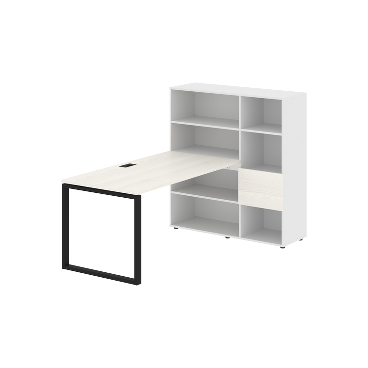 Столешница глубиной 800 мм, комплектуется регулируемой опорой О-образной формы из профиля трубы 60х30, комплектом телескопических траверс и двумя кронштейнами для крепления к стеллажу.