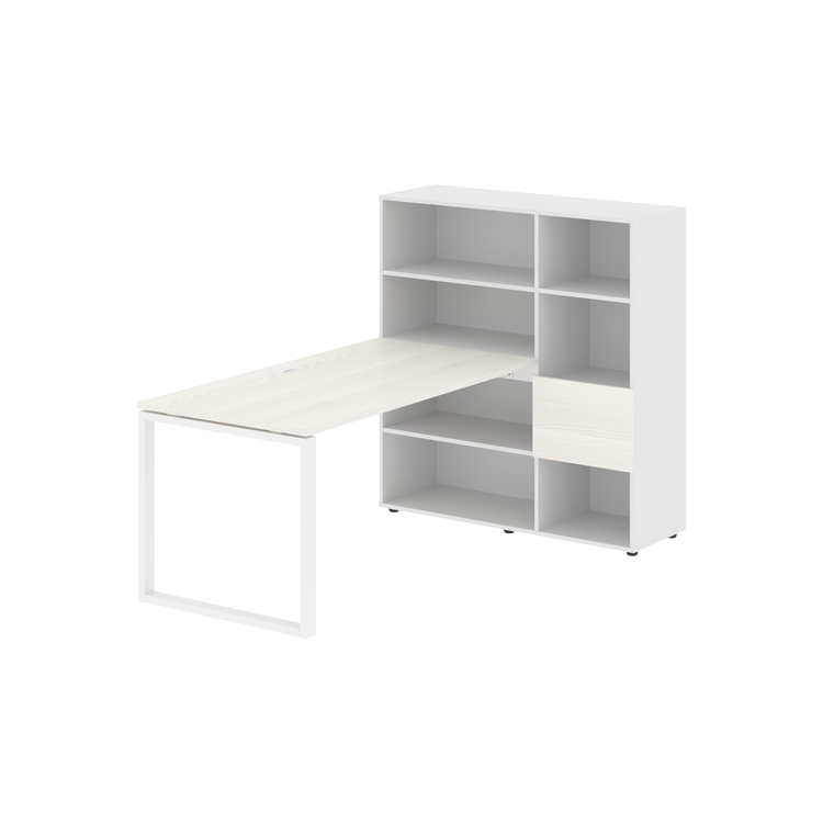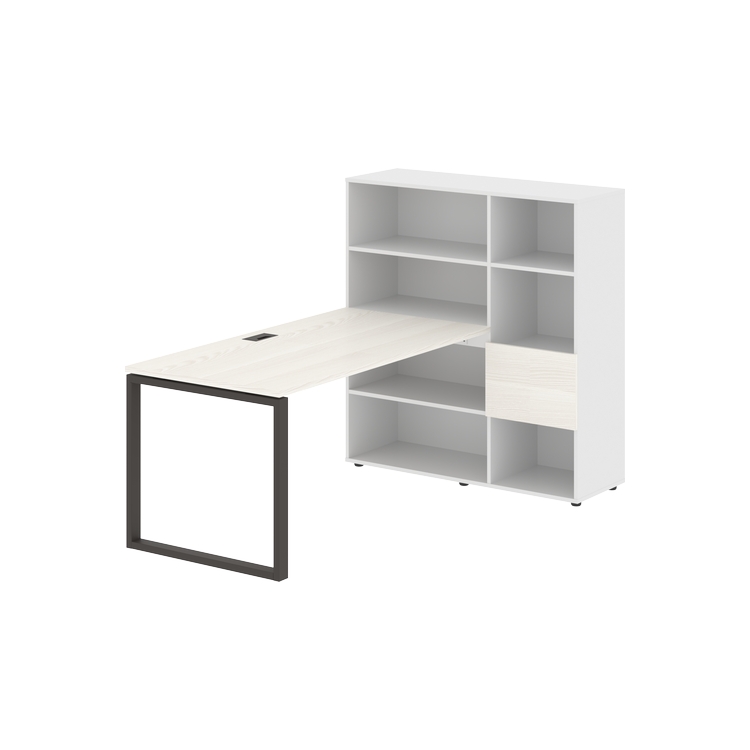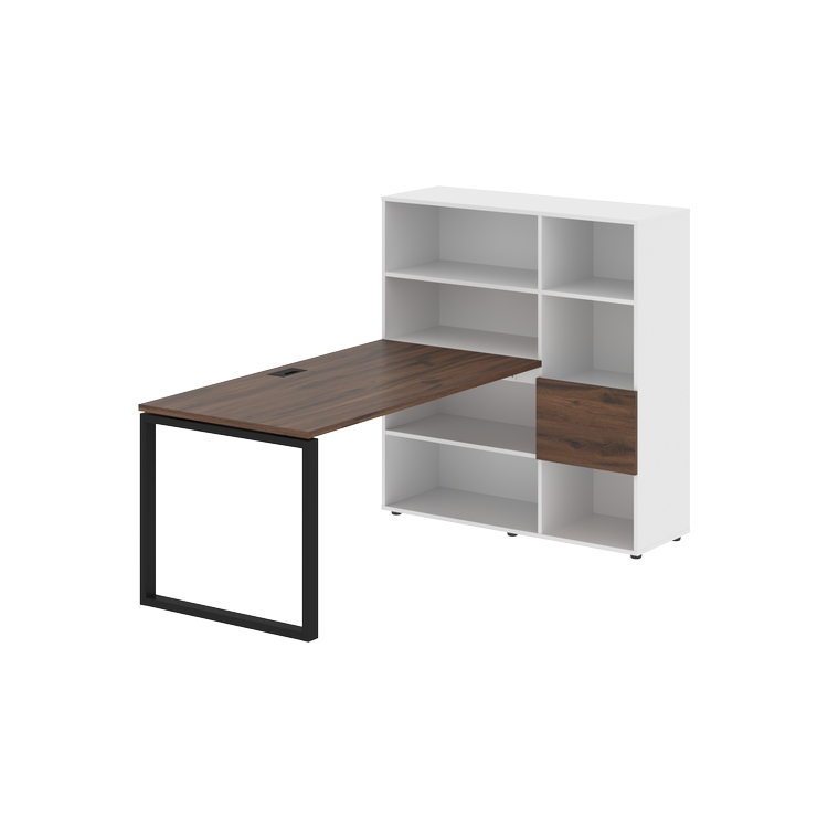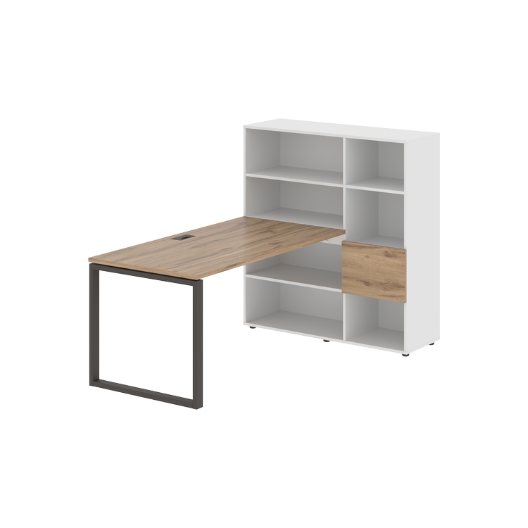 Каркасы стеллажей полностью из ЛДСП т.18 мм с кромками ПВХ т.2 и 0,45 мм, задняя стенка из ЛДСП. Комплектуется малой дверью в цвет столешницы и регулируемыми опорами h= 27 мм.
