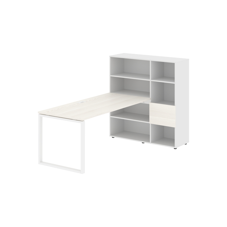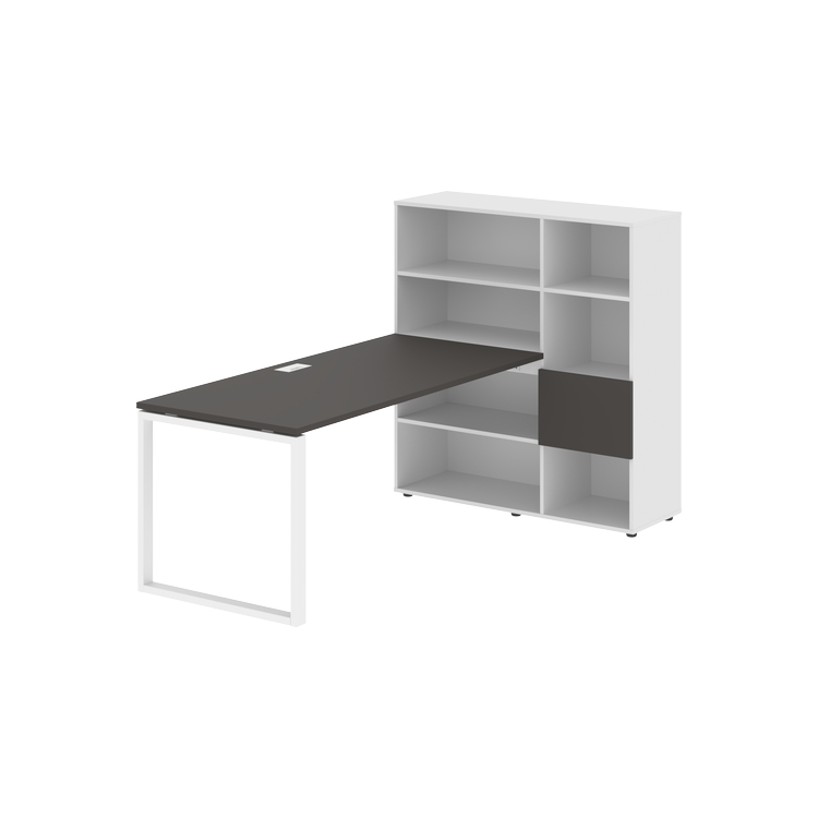 Каркасы стеллажей полностью из ЛДСП т.18 мм с кромками ПВХ т.2 и 0,45 мм, задняя стенка из ЛДСП. Комплектуется малой дверью в цвет столешницы и регулируемыми опорами h= 27 мм.