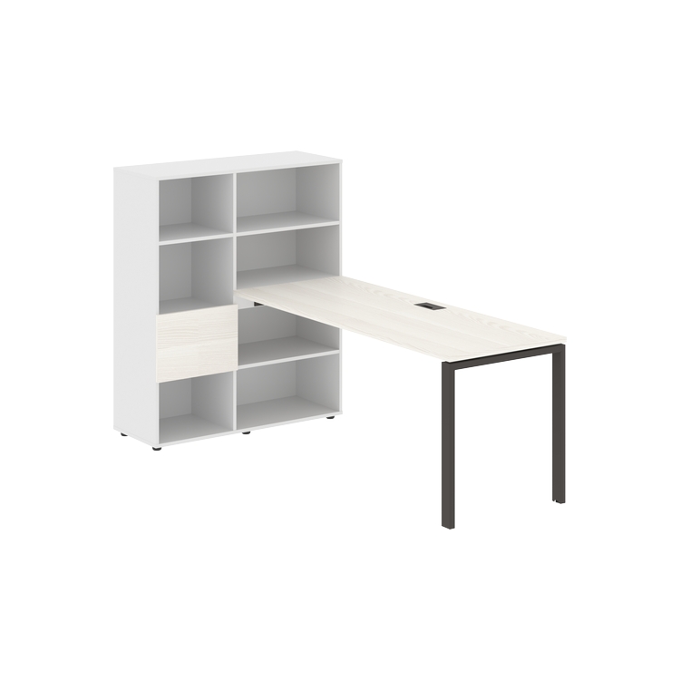Столешница глубиной 670 мм, комплектуется регулируемой опорой П-образной формы из профиля трубы 60х30, комплектом телескопических траверс и двумя кронштейнами для крепления к стеллажу.
