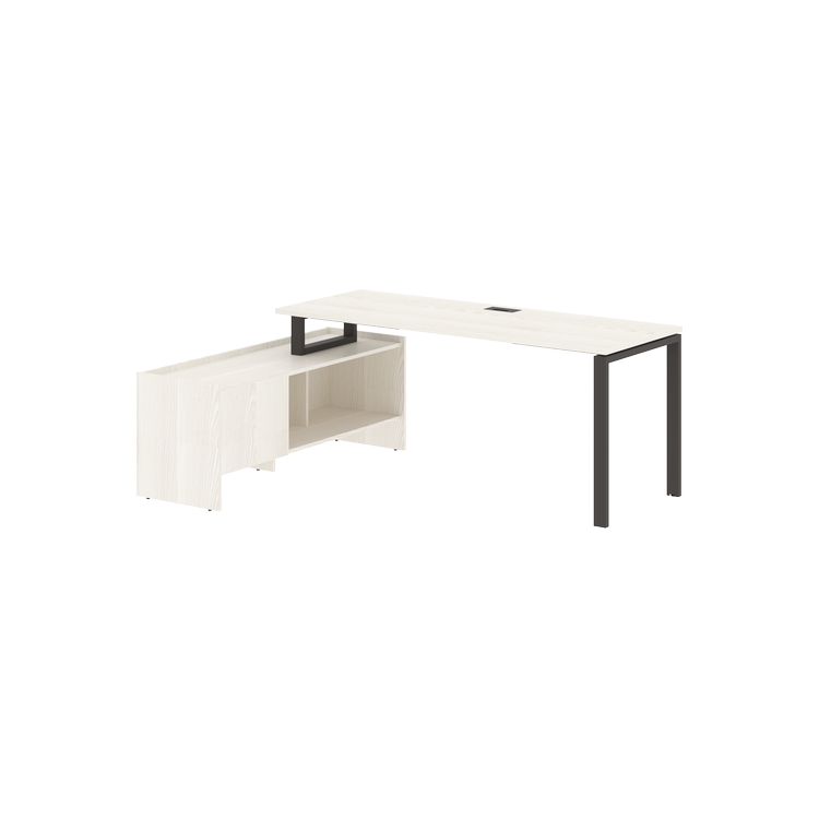 Столешница глубиной 670 мм из ЛДСП т.25 мм с кромками ПВХ по периметру т.2 мм. Комплектуется металлическим кабель-каналом габаритом 160х80х25 мм.