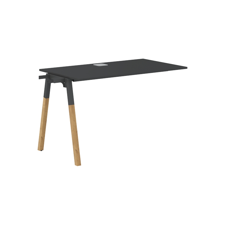 Столешница ЛДСП т.18мм. c кромкой ABS т.2.мм, комплектуется квадратной заглушкой кабель-канала по центру, 2-мя траверсами и промежуточной комбинированной опорой А-образной формы, верхняя часть из профиля трубы 40х40мм и нижняя часть из материала – бук; отделка – масло-воск.