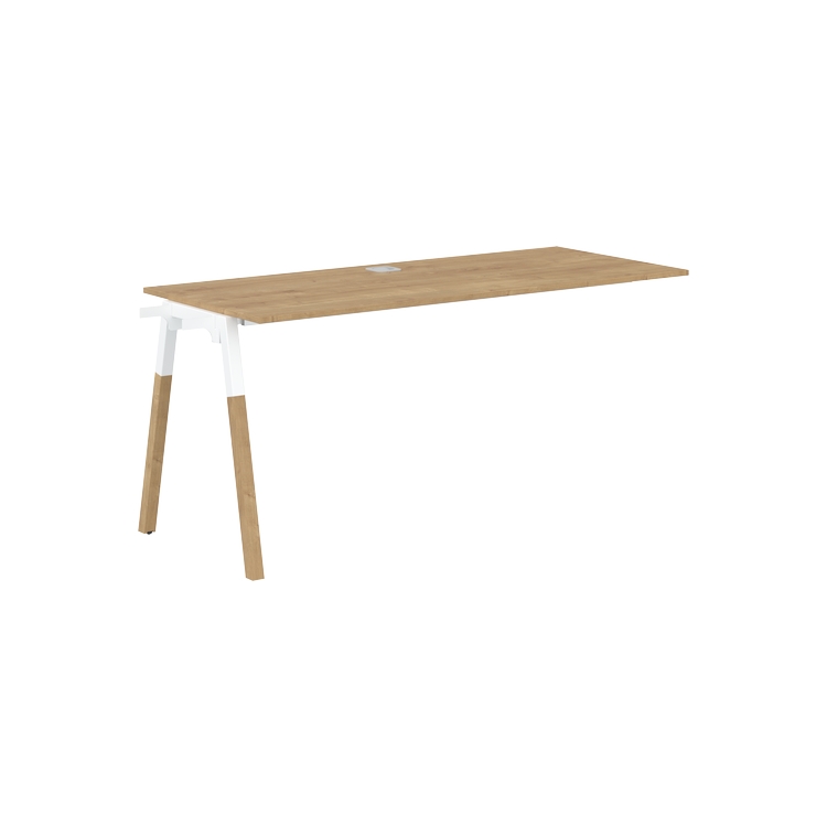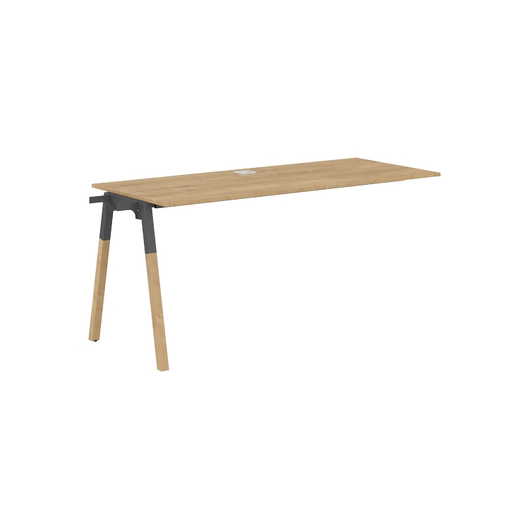 Столешница ЛДСП т.18мм. c кромкой ABS т.2.мм, комплектуется квадратной заглушкой кабель-канала по центру, 2-мя траверсами и промежуточной комбинированной опорой А-образной формы, верхняя часть из профиля трубы 40х40мм и нижняя часть из материала – бук; отделка – масло-воск.