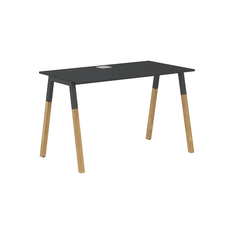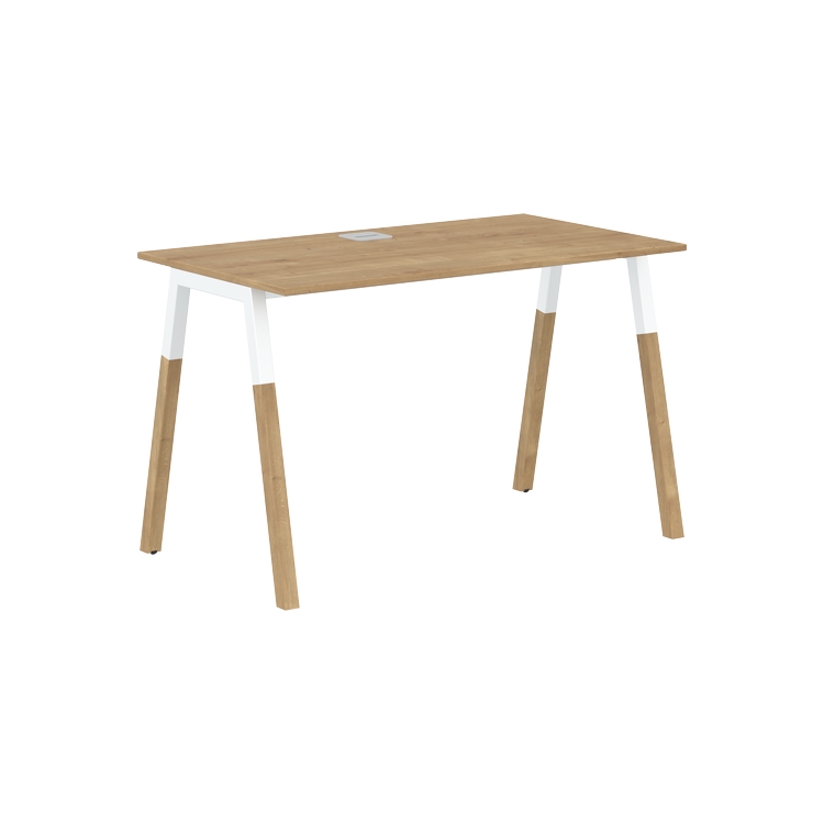 Столешница прямолинейная из ЛДСП т.18 мм. c кромкой ABS т.2 мм, комплектуется квадратной заглушкой кабель-канала по центру, 2-мя траверсами и комбинированными опорами А-образной формы, верхняя часть из профиля трубы 40х40 мм и нижняя часть из массива бука; отделка – масло-воск.