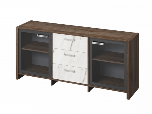 Тумба трехсекционная с 2 дверьми FI-13-02.G. Орех Пацифик Табак/Мрамор Леванто белый