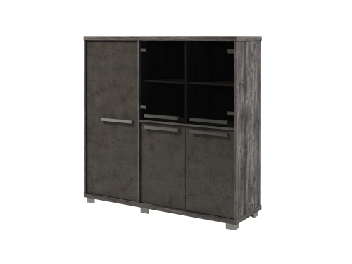 Справа в двух секциях в нижней части - двери ЛДСП, сверху - стеклянные двери.